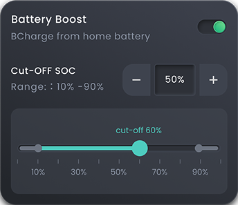 Use the battery to boost ev charging speed with extra energy. Set The Cut-Off SOC For Intelligent Power Usage.