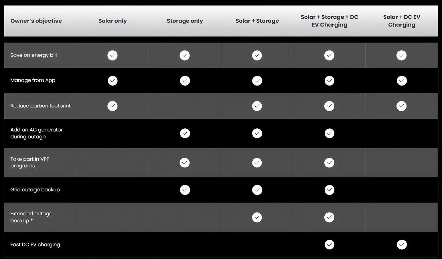 * Extended outage backup can be achieved via V2X, meaning leveraging EV power to supply energy to home.
